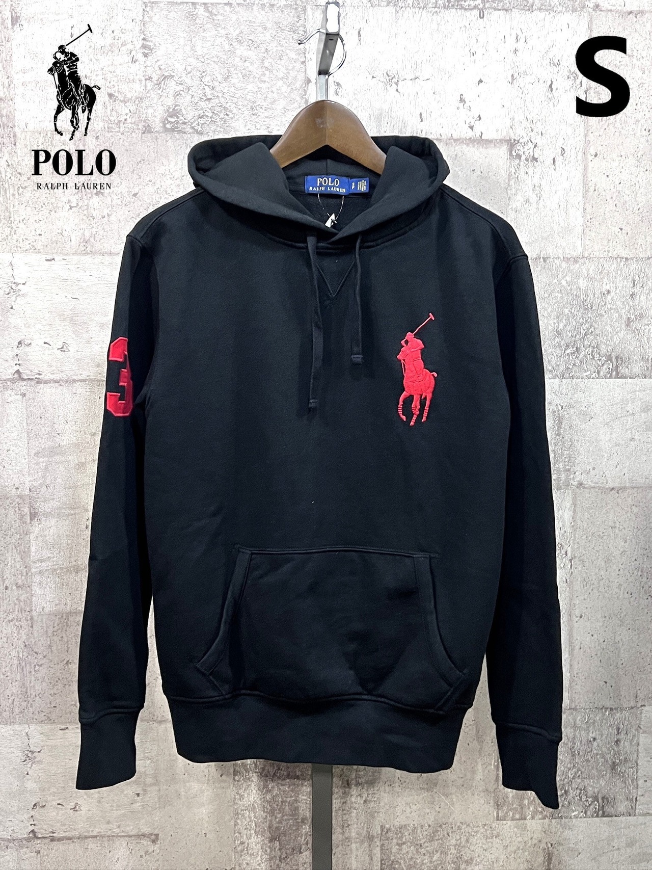 美品 ポロラルフローレン 正規品 ビッグポニー プルオーバーパーカー 黒赤 S ブラック スウェット POLO RALPHLAUREN