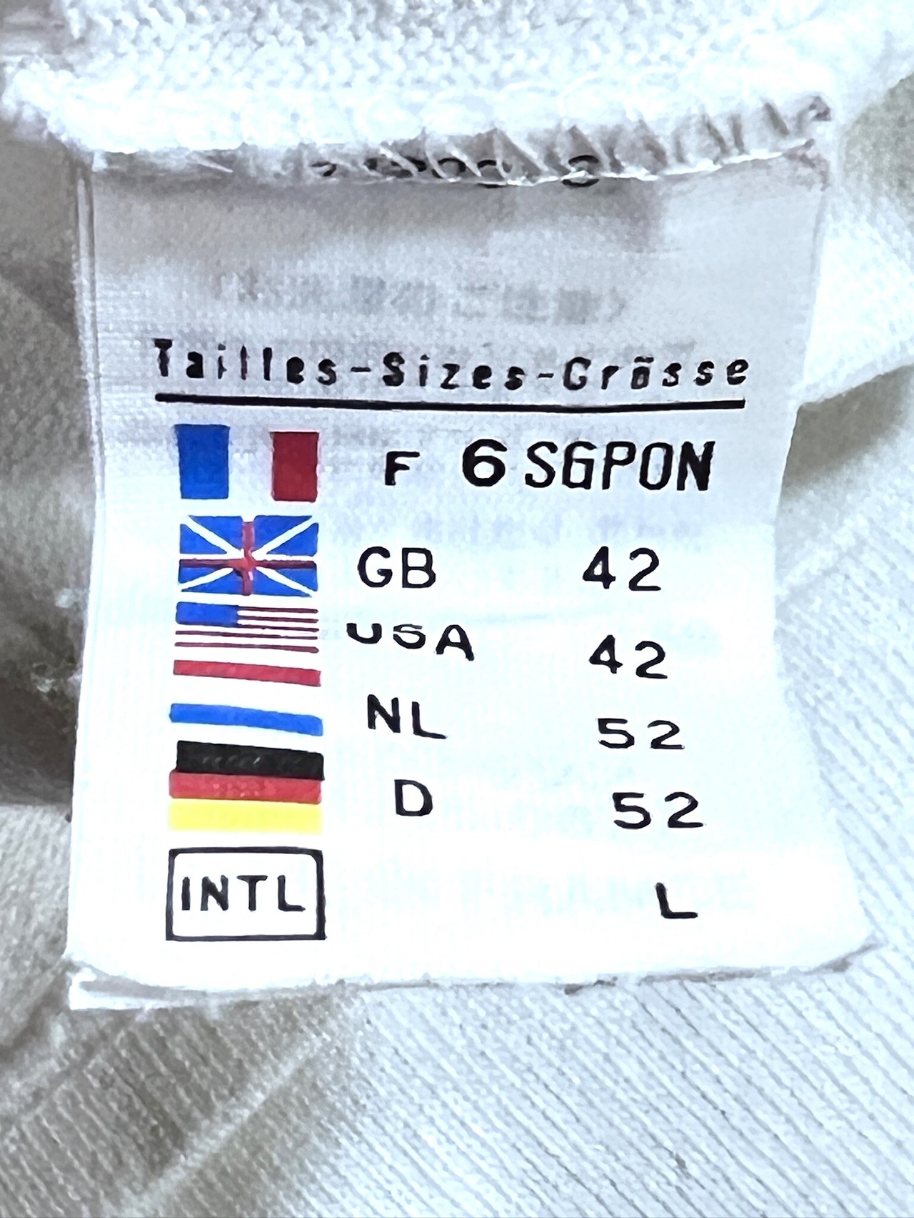 【表記サイズ】 T6(GB42/USA42/INTL:L)