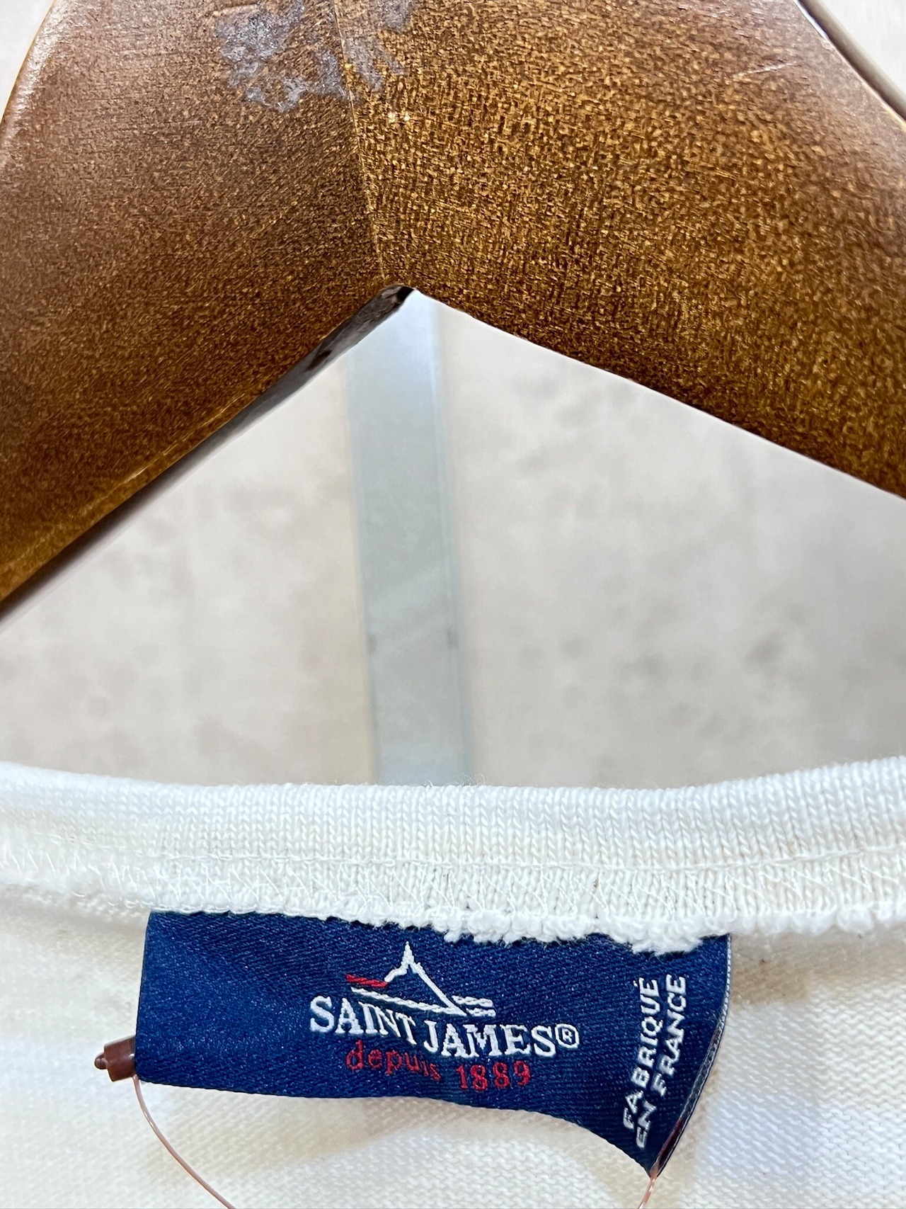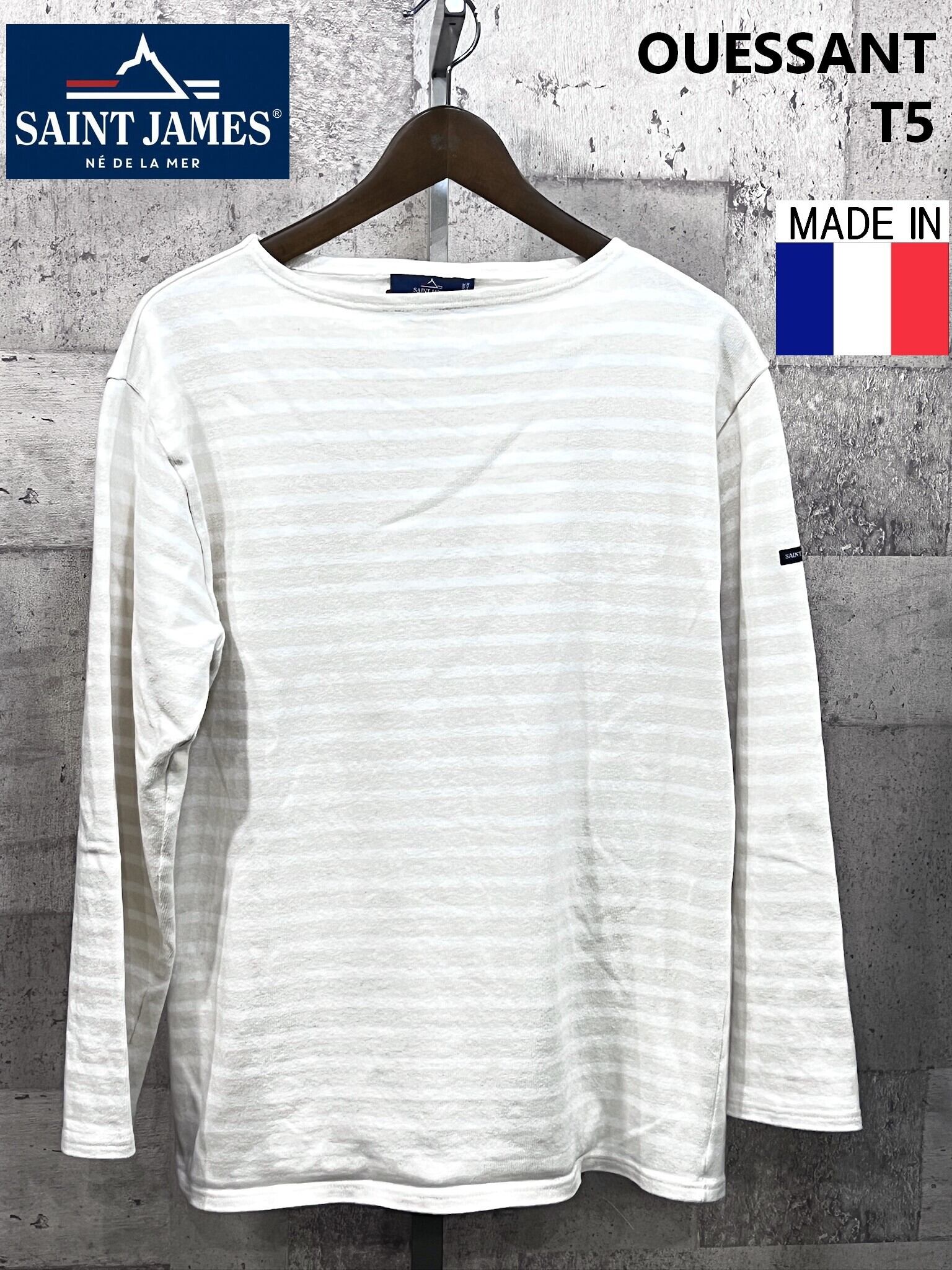 フランス製 セントジェームス ウェッソン T5 白アイボリー ボーダー バスクシャツ ボートネックシャツ SAINT JAMES