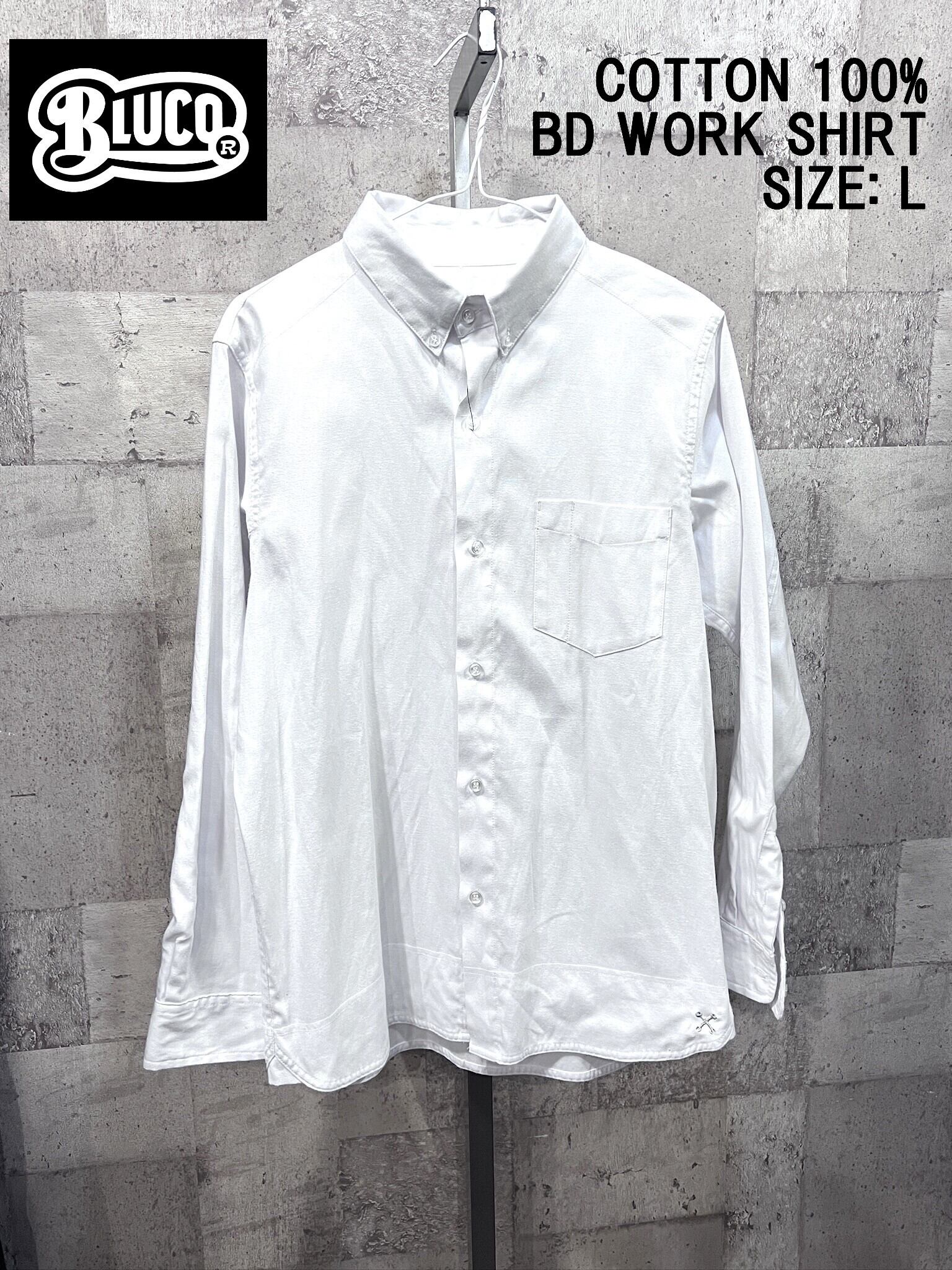 美品 BLUCO コットン オックスフォード ボタンダウンシャツ ワークシャツ 白 L ホワイト ブルコ OL-112