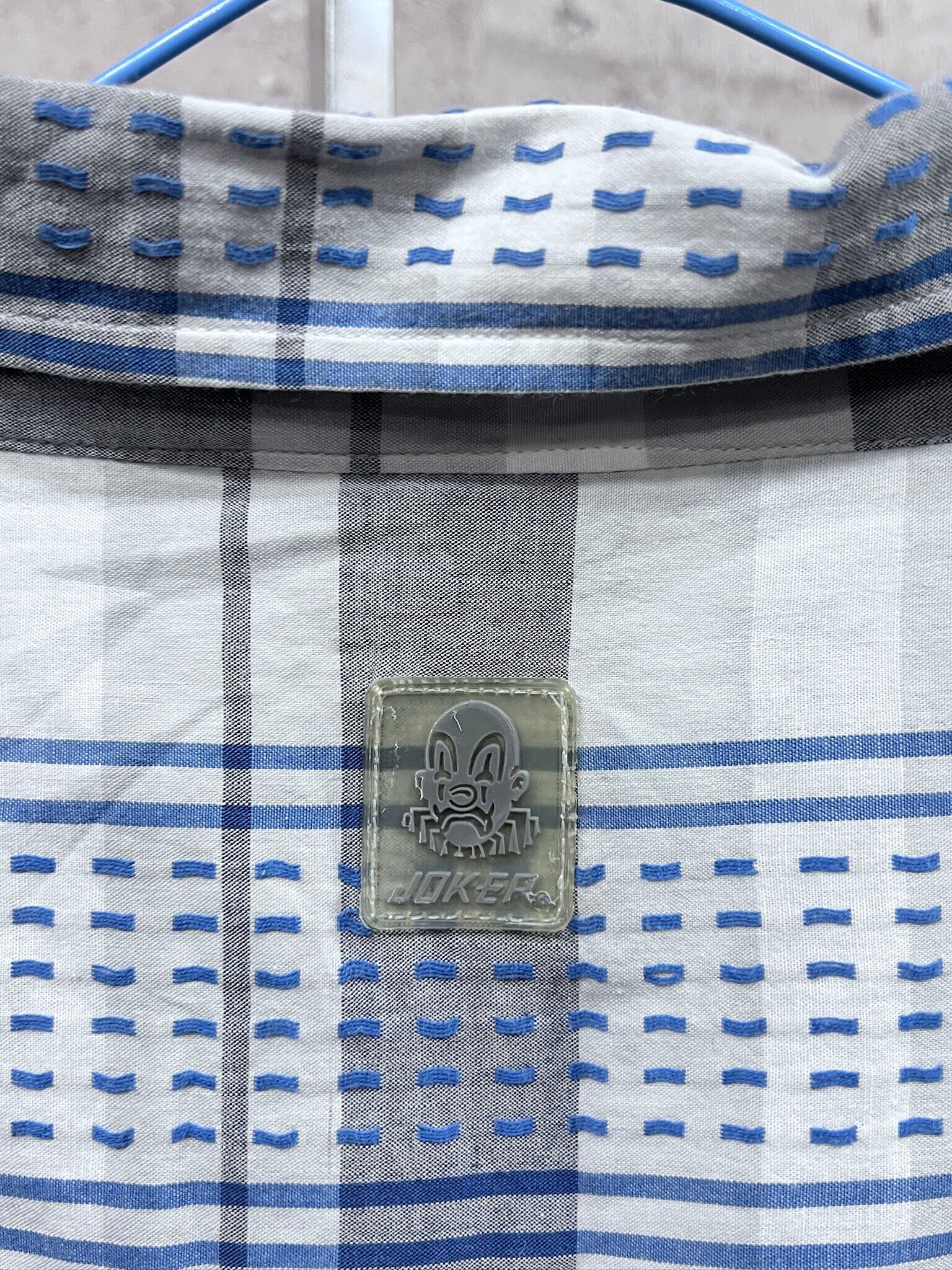 チェック柄に刺繍で点線をあしらった生地に、控えめなJOKERのパッチなので、ヤンチャ感は少なく合わせ易いかと思います。