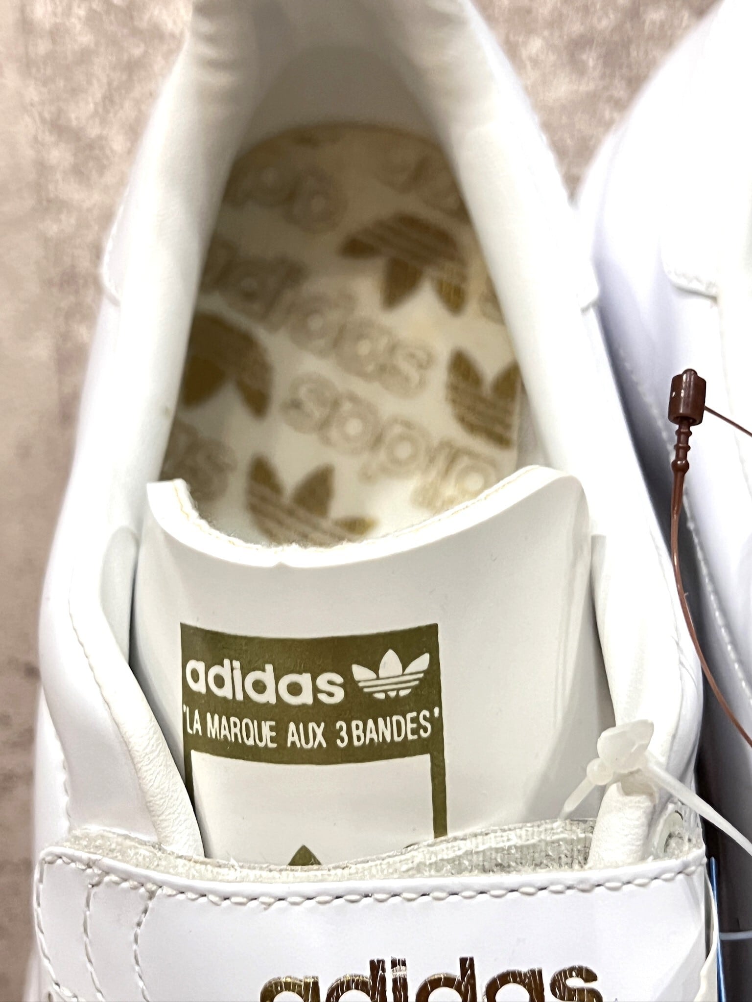タンはスタンスミスのような顔ロゴではなくトレフォイルロゴ、アウトソールのパターンも違いますね。