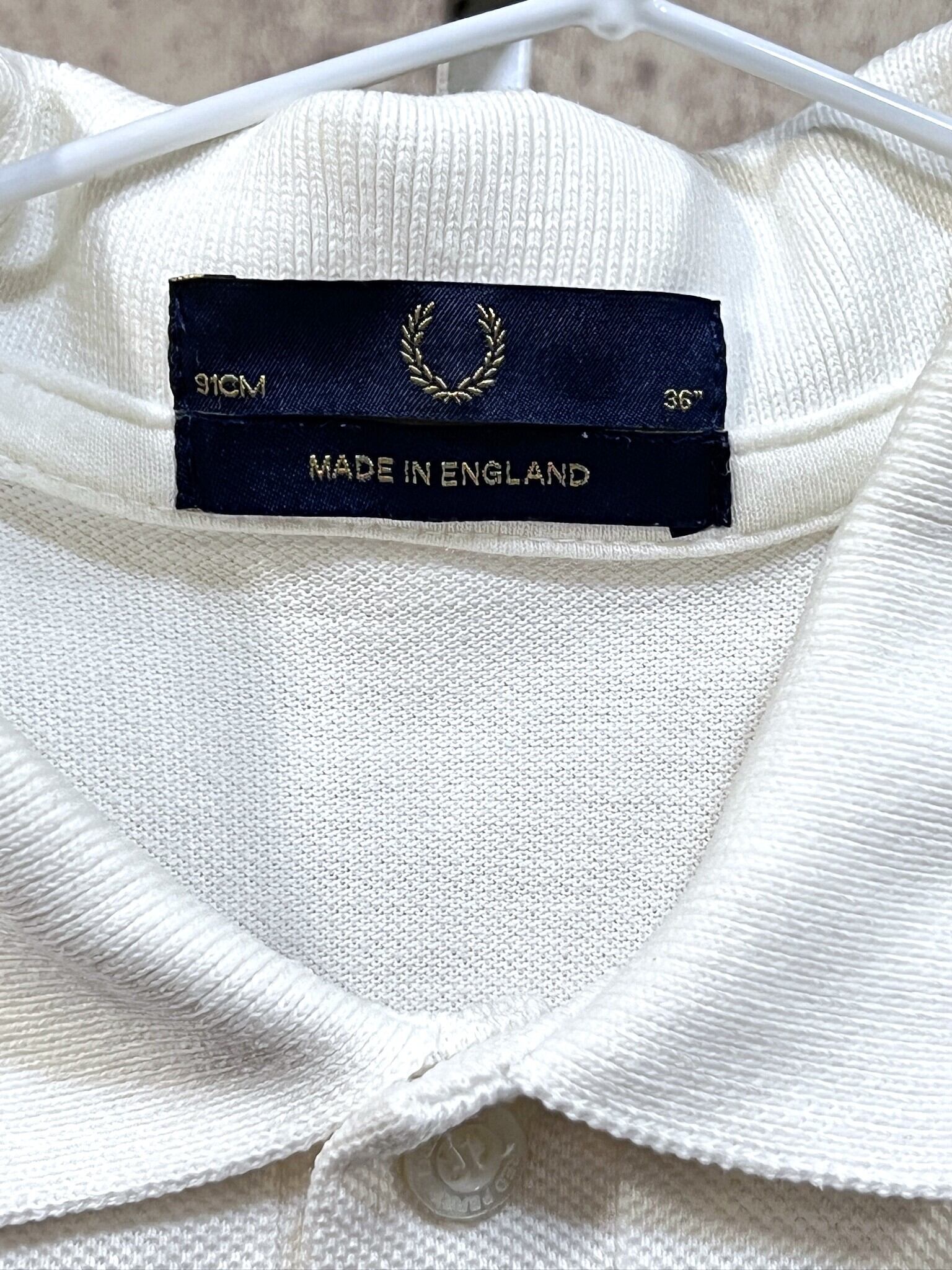 英国製 フレッドペリー M12N 鹿の子 ポロシャツ ライン 36 ホワイト FRED PERRY イングランド製 モッズ